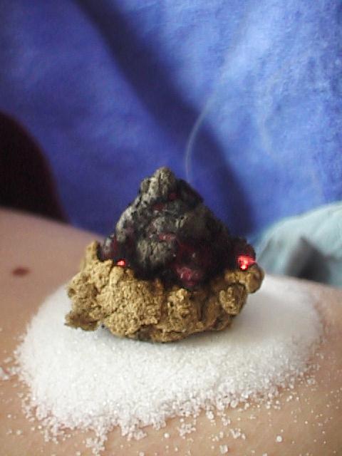 • שריפת "סיגר" המכיל עלי מוקסה גרוסים המשמש לחימום והקרנה של חום על אזור מסוים.